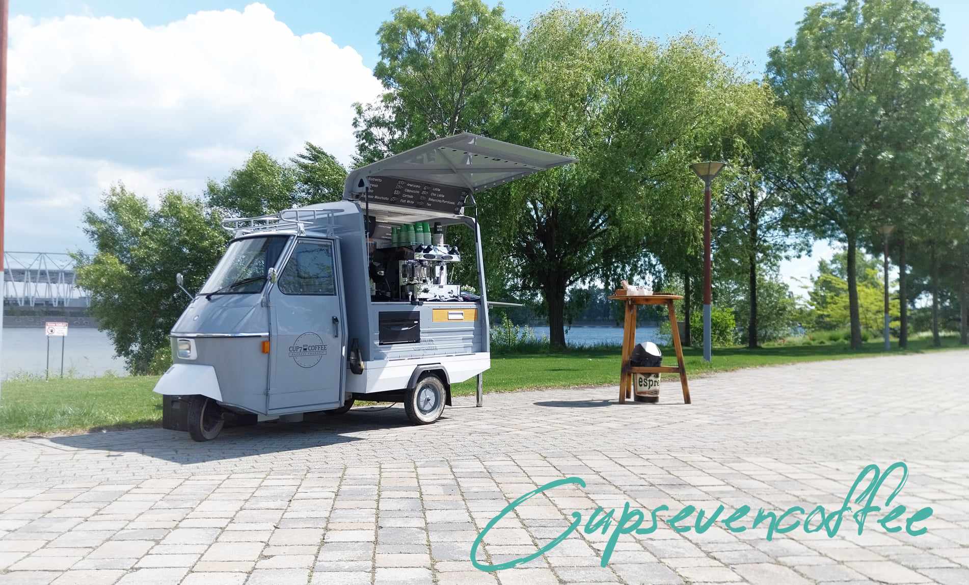 A Cupsevencoffee egy olasz gyártmányú Piaggio robogóra felépített mobil kávézó.